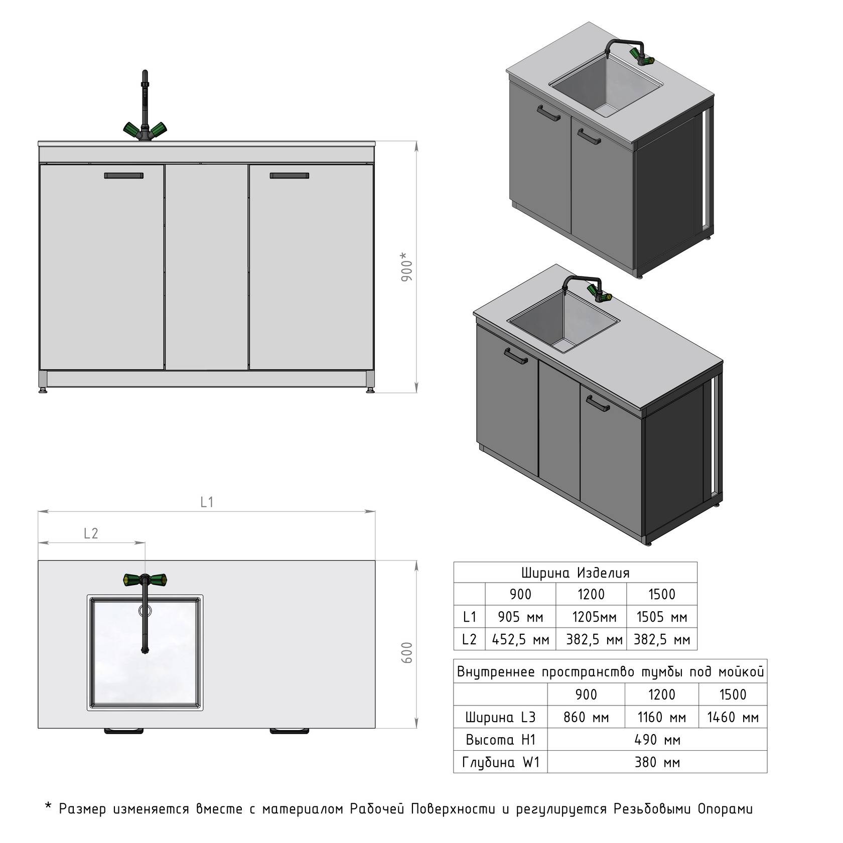 СТОЛ-МОЙКА ЛК-900 СМС-Д (корпус - ЛДСП), СТОЛ-МОЙКА ЛК-900 СМС-Д (корпус - ЛДСП), Мойки лабораторные