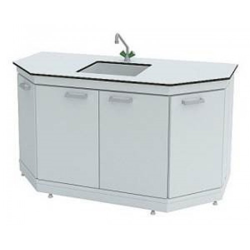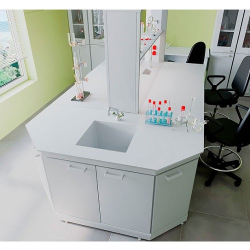 Представляет собой вариант торцевого лабораторного стола, оснащенного сливной раковиной, смесителем и тумбой. Используется в составе островных столов, создавая единое визуальное и рабочее пространство. Опционально может комплектоваться раковинами из нержавеющей стали.