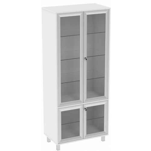 Внутреннее заполнение шкафа - стеклянные полки. Шкаф установлен на регулируемые опоры высотой 100мм.