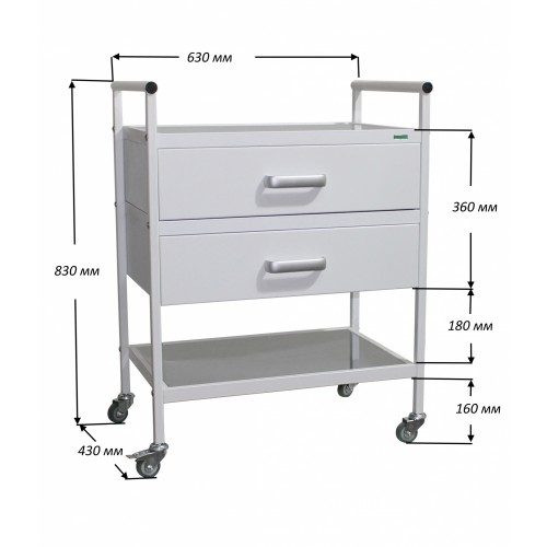 Покрытие тележки устойчиво к регулярной обработке всеми видами медицинских дезинфицирующих и моющих растворов.