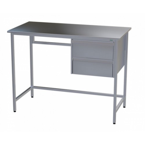 Столы могут быть изготовлены из нержавеющей̆ стали AISI 201 и AISI 430 или AISI 304 (поверхность зеркальная). Изделия изготавливаются таким образом, чтобы гарантировать оптимальное сочетание легкости конструкции, надежности и длительности эксплуатации. Качественная сварка позволяет получить герметичные соединения элементов изделий, что значительно облегчает уход и санитарную обработку. Конструкционно столешница выполнена в виде лотка из листа нержавеющей стали, внутрь которого вклеено основание из влагостойкой ЛДСП. Выдвижные ящики установлены на шариковые направляющие полного выдвижения.