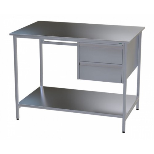 Столы могут быть изготовлены из нержавеющей̆ стали AISI 201 и AISI 430 или AISI 304 (поверхность зеркальная). Изделия изготавливаются таким образом, чтобы гарантировать оптимальное сочетание легкости конструкции, надежности и длительности эксплуатации. Качественная сварка позволяет получить герметичные соединения элементов изделий, что значительно облегчает уход и санитарную обработку. Конструкционно столешница выполнена в виде лотка из листа нержавеющей стали, внутрь которого вклеено основание из влагостойкой ЛДСП. Выдвижные ящики установлены на шариковые направляющие полного выдвижения.