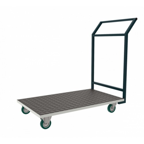 Платформа имеет покрытие из листовой стали толщиной 1,5 мм. Передние колёса тележки неповоротные. Задние-поворотные. Опорные ролики колёс, диаметром 100 мм, изготовлены из немаркой резины серого цвета.