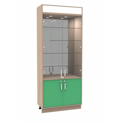 Шкаф-витрина первой линии. В стандартной комплектации изготавливается из ЛДСП толщиной 16мм типовых расцветок из "Каталога Декоров".