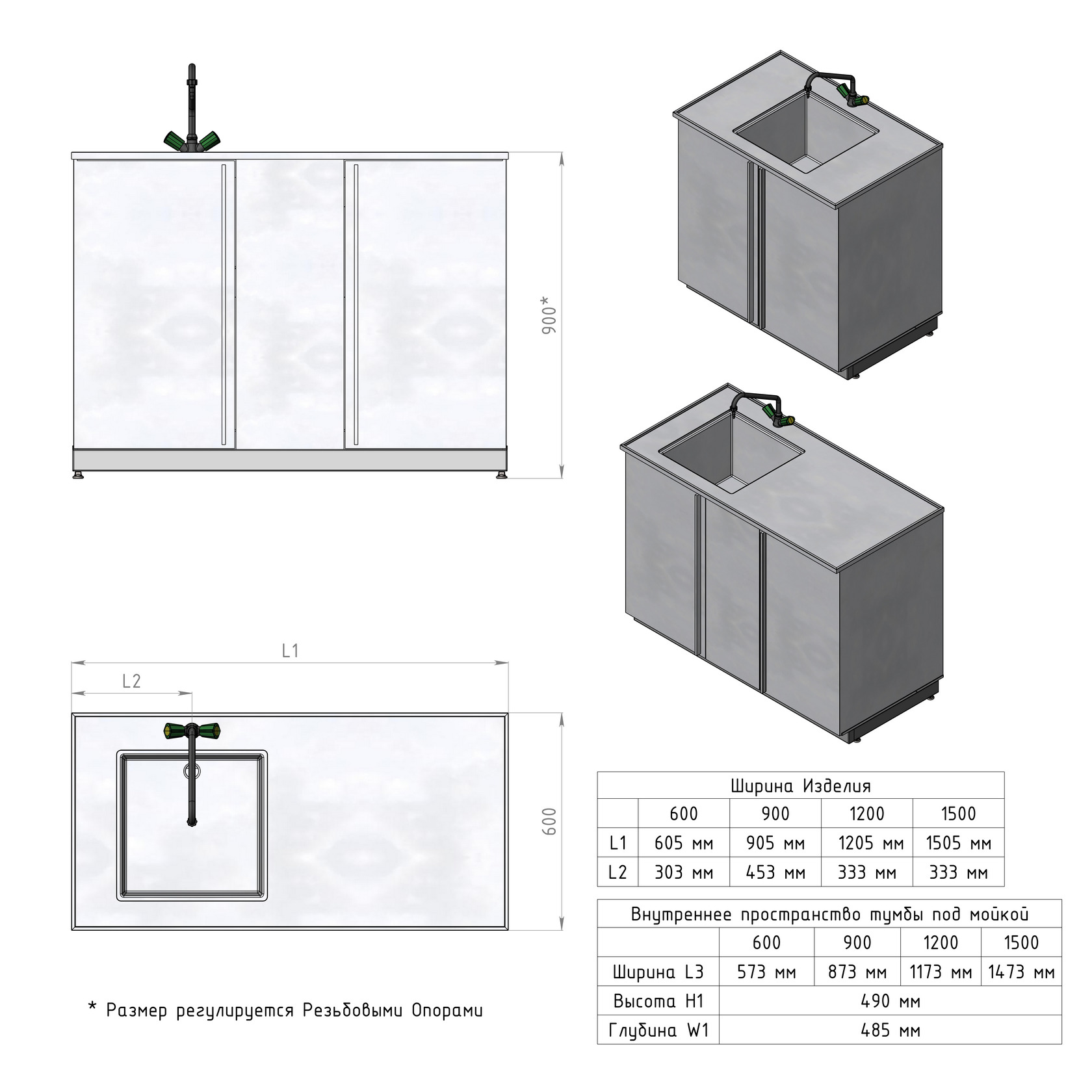 Мойка лабораторная химическая ЛК-600 СМС-ПВ (1 раковина, 1 смеситель), ЛК-600 СМС-ПВ (1 раковина, Мойки лабораторные химические