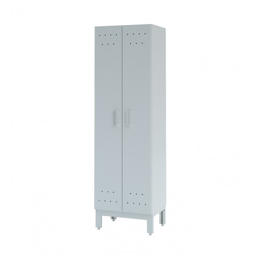 Шкаф шириной 800 мм имеет две дверки, полку и штангу для вешалок. Шкаф шириной 400 мм (только из ЛДСП) имеет одну дверку, полку и штангу для вешалок. Устанавливается на металлический сборно-разборный каркас с полимерным покрытием серого цвета. В каркасе предусмотрены регулируемые опоры в диапазоне 0-30 мм для компенсации неровностей пола. Шкаф из ЛДСП имеет одно общее отделение, шкаф из стали - два.