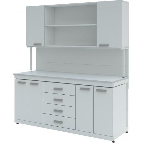 Стол лабораторный с шкафом-надстройкой состоит из прочного сборно-разборного металлического каркаса с полимерным покрытием,
