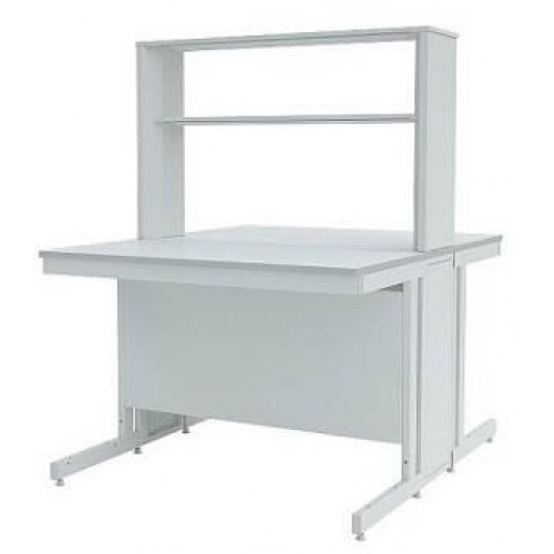 Стол островной ЛК-1800 СО состоит из прочного сборно-разборного металлического каркаса с полимерным покрытием серого цвета, технологической приставки с двумя полками из стали и столешницы.