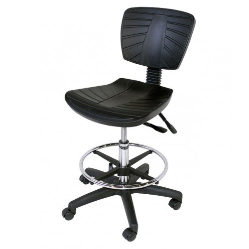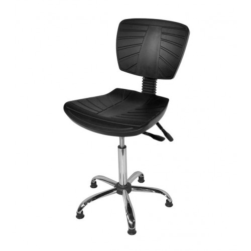 Материал сиденья и спинки лабораторного стула GEMA - мягкий литой полиуретан черного цвета, позволяющий работать в условиях больших знакопеременных нагрузок и температур.
